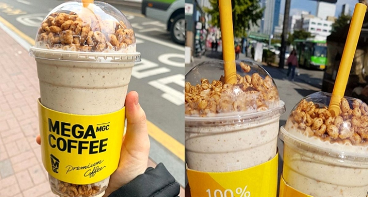 그 주인공은 바로 메가커피의 '퐁크러쉬'로 바닐라 셰이크 위에 우리가 너무나 잘 알고 있는 죠리퐁이 잔뜩 얹혀 있는 게 특징이다.