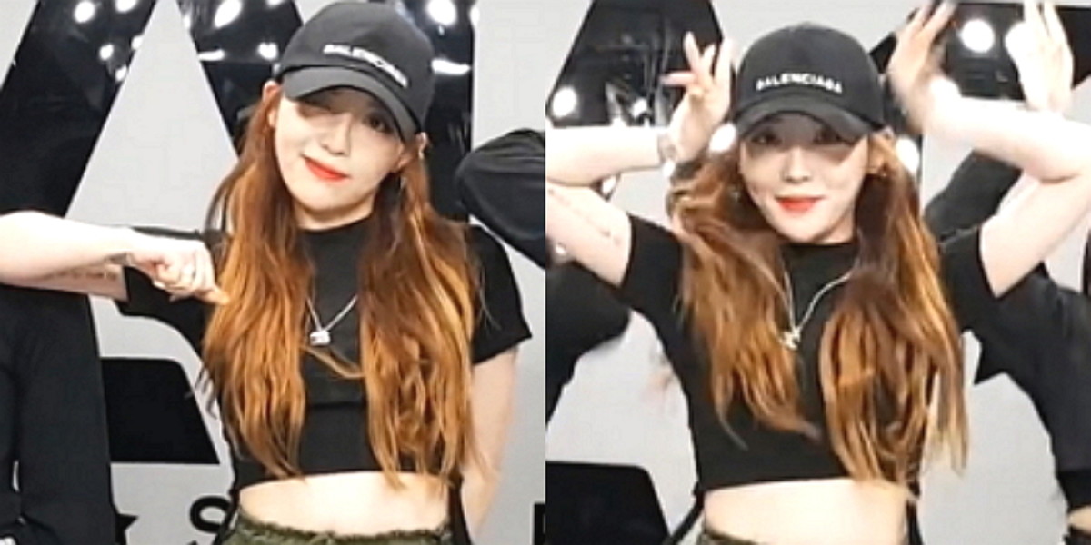 가녀린 허리를 돋보이게 하는 검은 크롭티와 함께 매치한 카키색 팬츠로 캐주얼하면서도 편안한 복장을 재연한 슈기는 전주가 나오자 바로 팔을 시원스럽게 뻗으며 커버댄스를 시작했다.