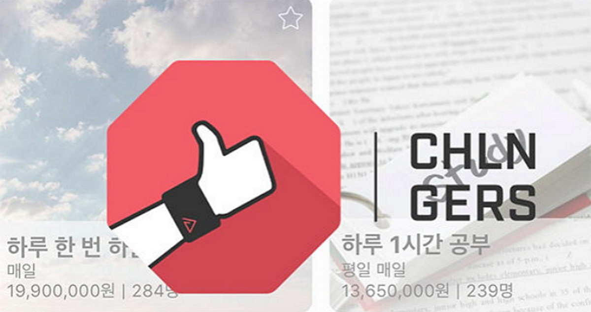 '챌린저스'는 이용자들이 원하는 목표를 달성하도록 도와주는 앱으로 '만보 걷기', '종이신문 읽기', 'TED 강연보기' 등 170여 건의 프로젝트가 등록돼 있다. 특히 참가자들은 목표달성을 위해 소액의 돈을 걸고 프로젝트에 참가 할 수 있다.