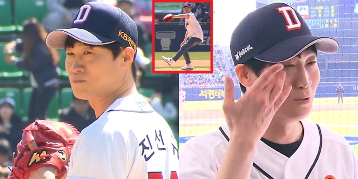 [인사이트] 전현영 기자 = 배우 진선규가 성공적인 시구를 보여준 뒤 눈물을 글썽였다.