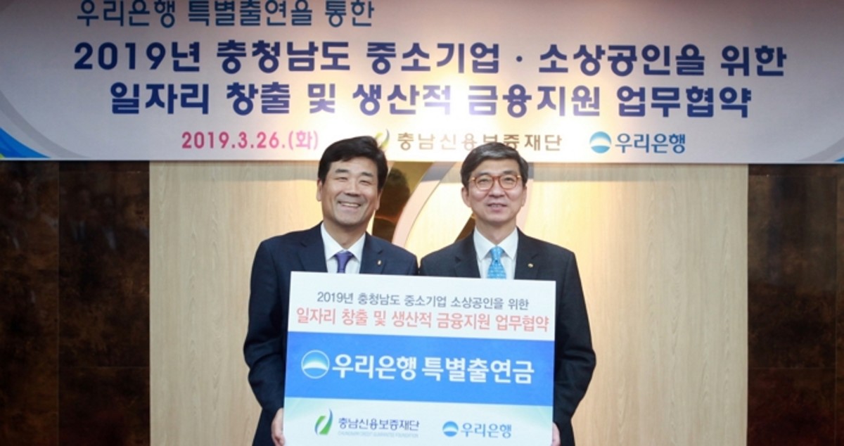한편 지난 26일 충남 아산시에 위치한 충남신용보증재단에서 '2019년 충청남도 중소기업·소상공인 일자리 창출 및 생산적 금융지원 업무협약'을 체결했다.
