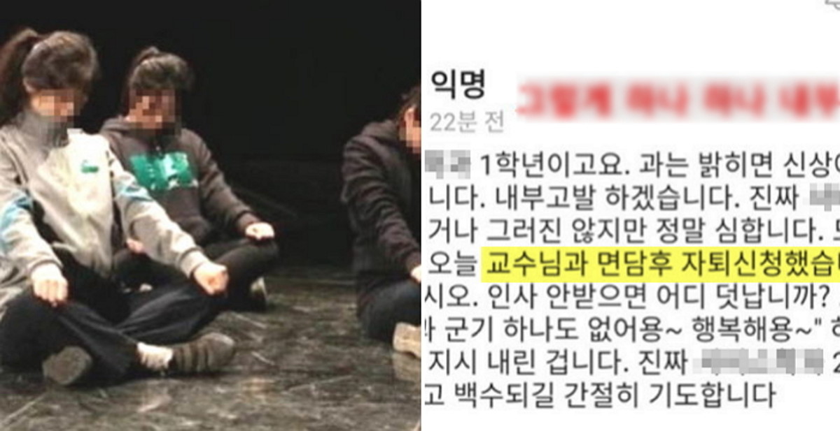 그는 "막 때리거나 그러진 않지만 정말 심합니다. 도저히 못 참을 것 같아서 오늘 교수님과 면담 후 자퇴 신청했습니다"라고 언급하며 설움을 토로했다.