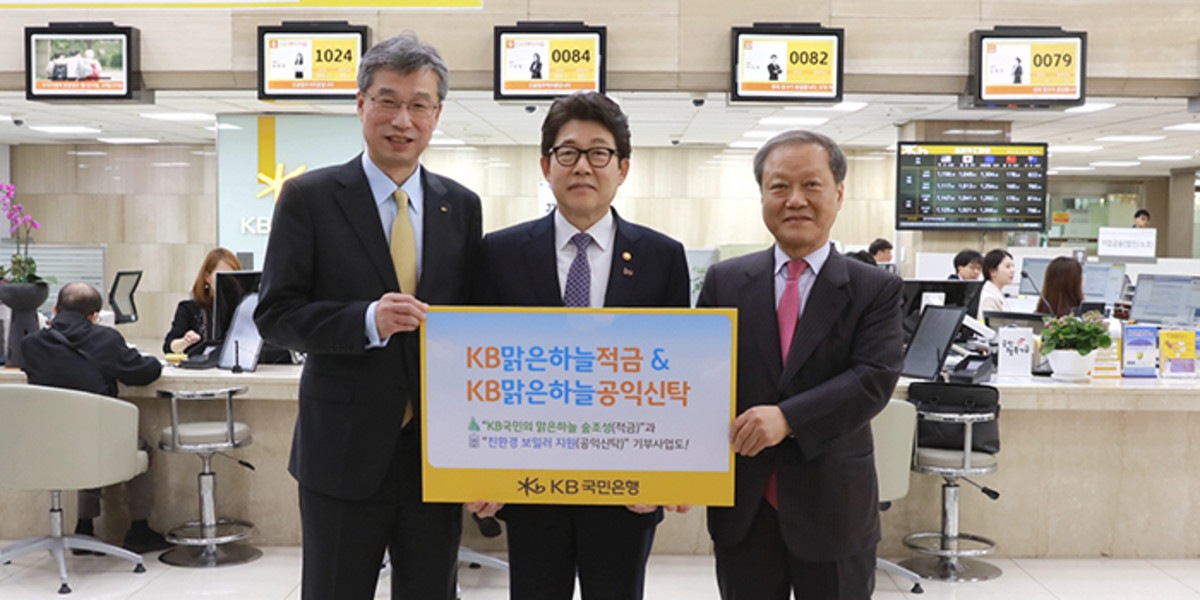 더불어 KB국민은행은 고객이 가입한 적금 한 좌당 1,000원의 기부금을 조성해 미세먼지 저감을 위한 'KB 국민의 맑은하늘 숲'을 조성할 계획이다.