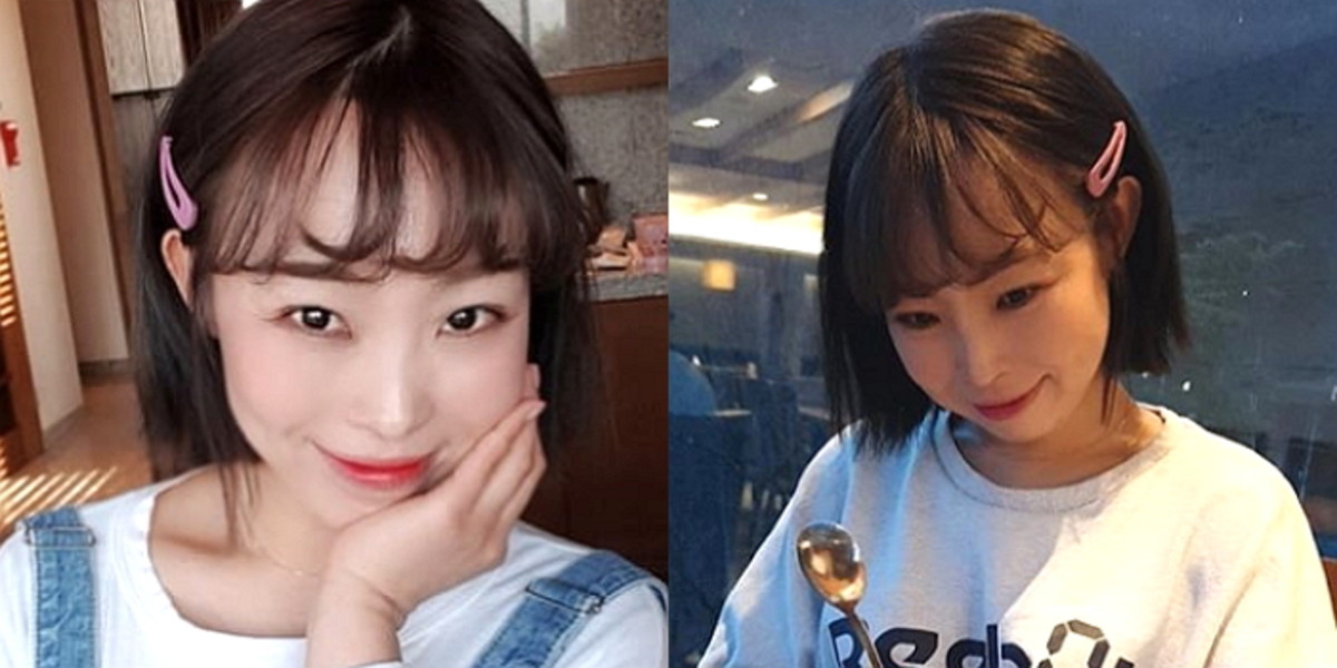 오나미는 턱 끝까지 오는 단발머리와 청 멜빵 원피스를 입은 채 동안 외모를 자랑했다.
