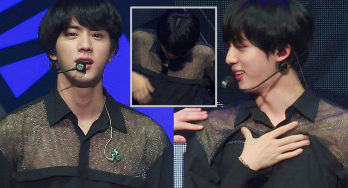 최근 각종 SNS 및 온라인 커뮤니티에는 방탄소년단 진이 시스루 의상을 입고 곤란(?) 해하는 사진이 공개됐다.