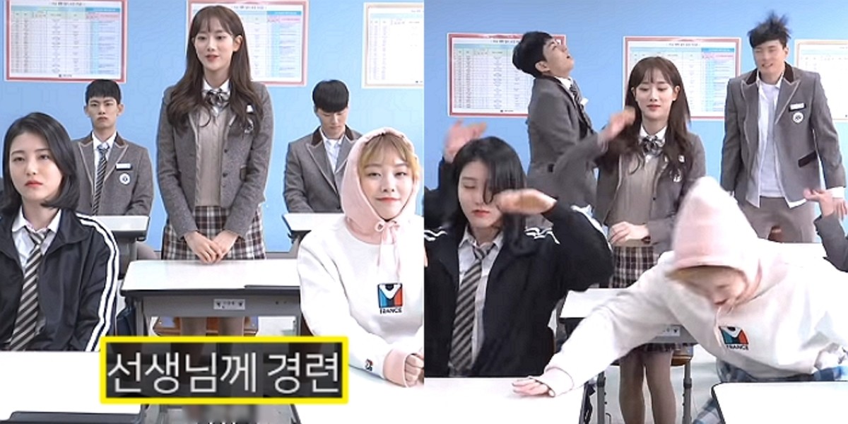 이나은은 "차렷! 선생님께 경례"가 아닌, "차렷! 선생님께 경련"이라고 말하며 선생님을 당황하게 했다.
