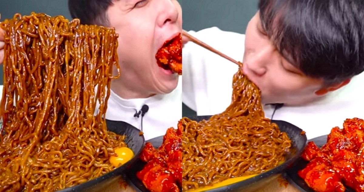 아래는 '와구와구 먹방'의 대명사라 불리는 유디티의 짜파게티, 쇼킹핫양념치킨 먹방 영상이다.