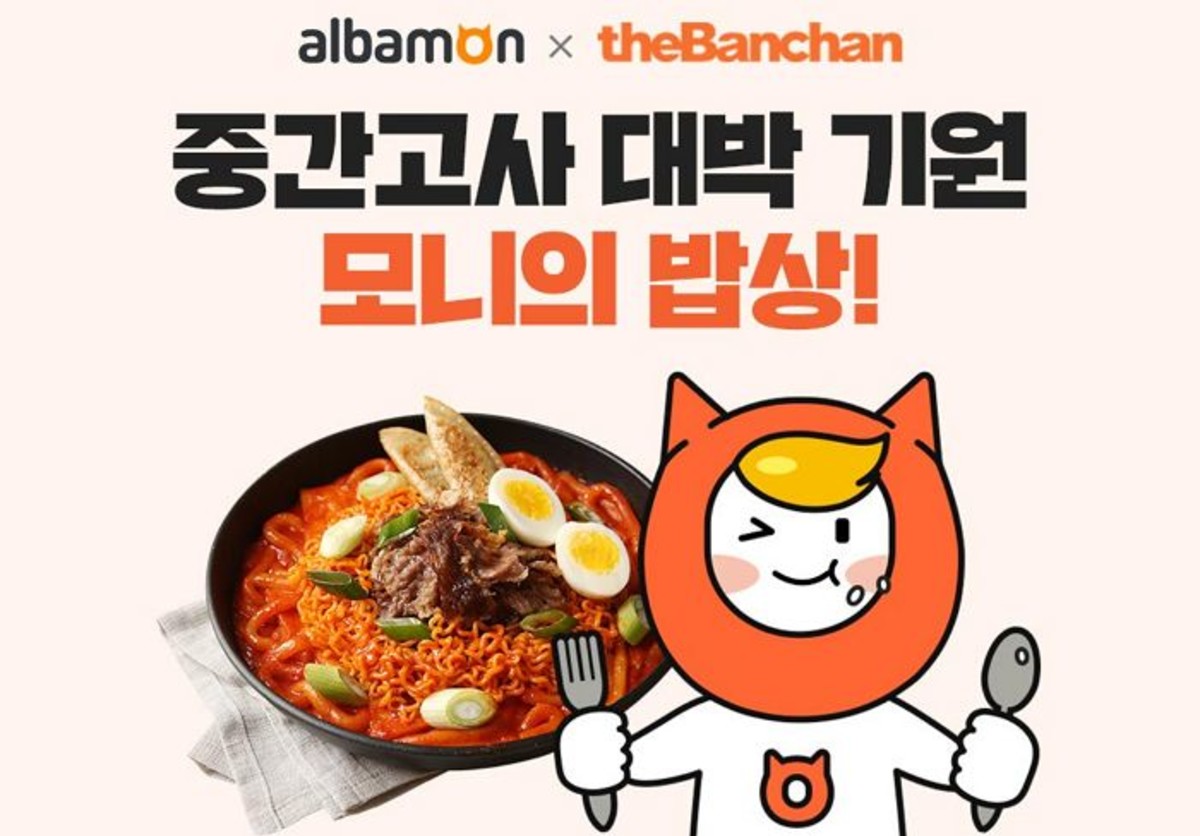 중간고사 기간, 알바몬이 든든한 한끼 쏩니다! 더 반찬 국/반찬 세트, 차돌누들 떡볶이 제공