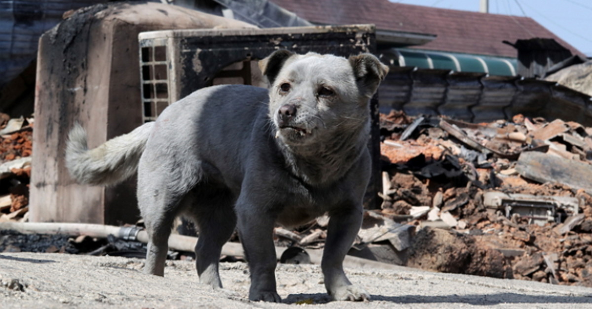 강원도 고성군 토성면 용촌1리마을에서 발견된 강아지의 모습은 말 못 하는 동물들에게도 산불이 큰 재난이라는 것을 실감케 한다.