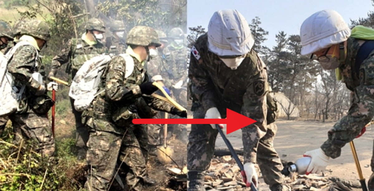 병사들은 흰색 방탄모를 쓰고 마스크를 쓴 채, 낙엽 사이사이에 숨어있는 작은 불씨까지 샅샅이 뒤지는 등 고된 작업을 이어가고 있다.