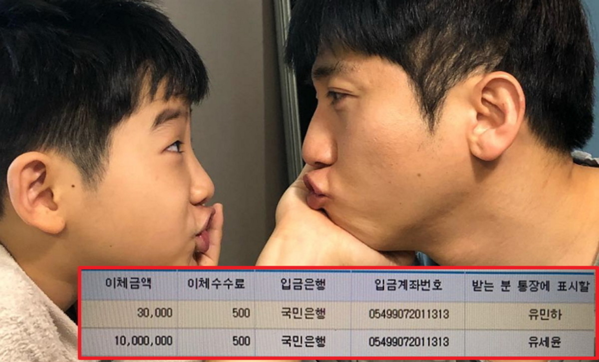 유세윤은 1000만원의 성금을, 초등학생인 그의 아들은 용돈을 모아 3만원을 기부한 모습이다.