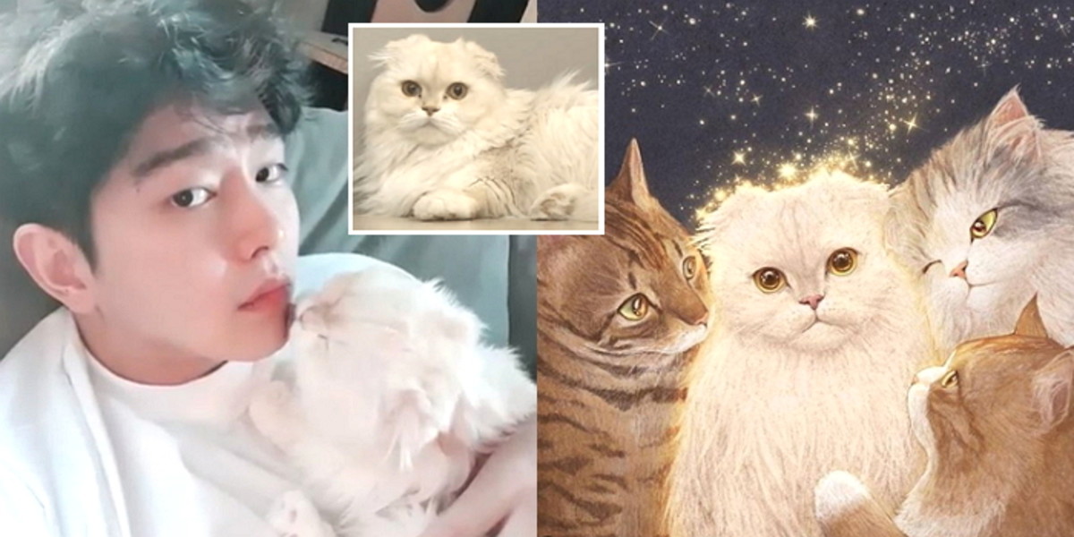 공개된 사진에는 한 일러스트 작가가 그린 윤균상의 반려묘 4마리의 모습이 담겨있다.