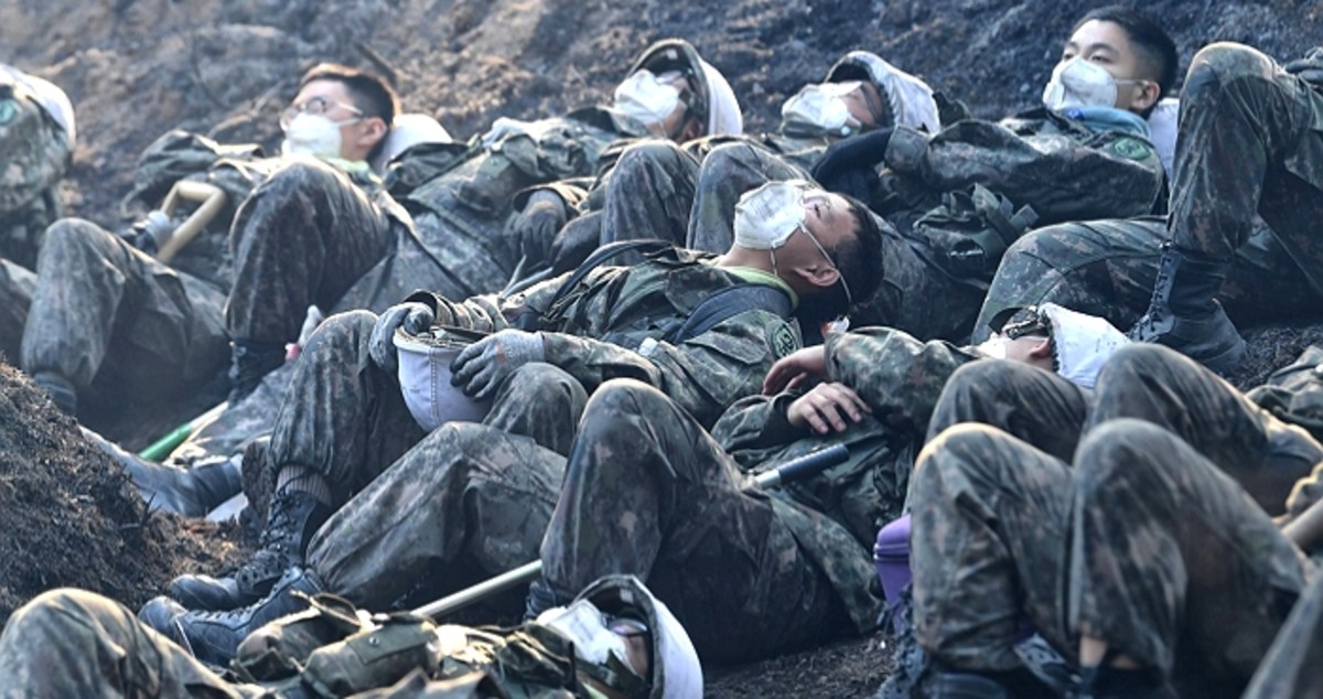 마지막 불씨까지 제거하고 녹초가 된 장병들은 그대로 맨바닥에 드러누워 휴식을 취했다.
