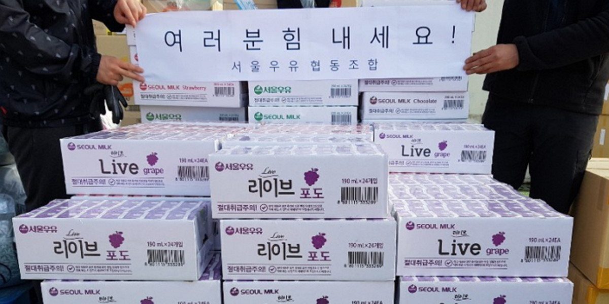 2017년에 발생한 포항 지진 때도 우유 2만 6000개를 지원했다.