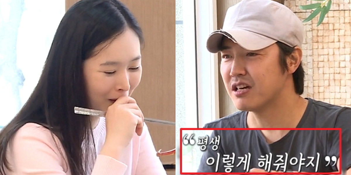 윤상현은 "내가 너한테 마음이 갔던 게 뭐냐면 강릉을 왔는데 네가 너무 좋아하더라. 고기 다음으로"라며 메이비와 결혼을 결심하게 된 계기에 대해 입을 열었다.