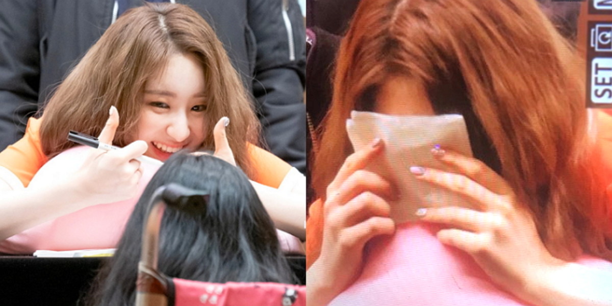아이가 다른 멤버에게 사인을 받기 위해 자리를 떠나자, 이채연은 그제서야 참아왔던 눈물을 터트렸다.