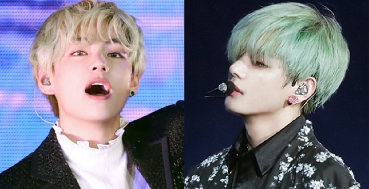 과일 멜론을 떠오르게 하는 초록색 색상으로 머리를 염색한 뷔는 청량한 분위기를 한가득 자아냈다.