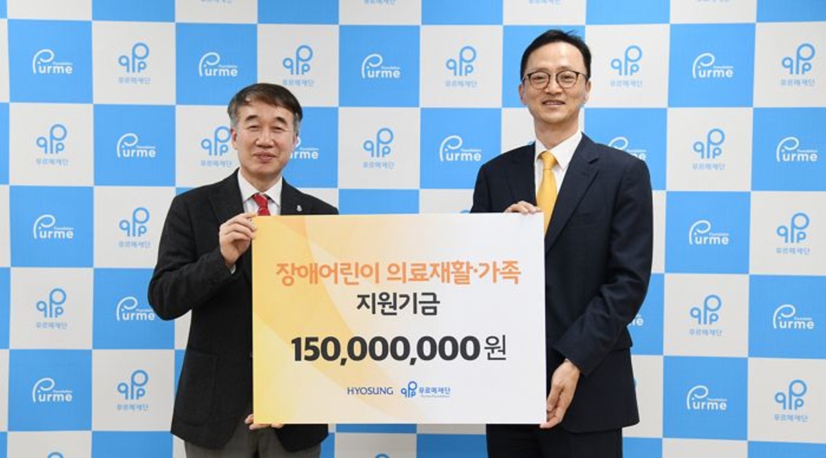[인사이트] 황성아 기자 = 효성이 지난 9일 푸르메재단에 '장애어린이 의료재활·가족 지원사업' 지원금 1억 5천만원을 전달했다고 밝혔다.