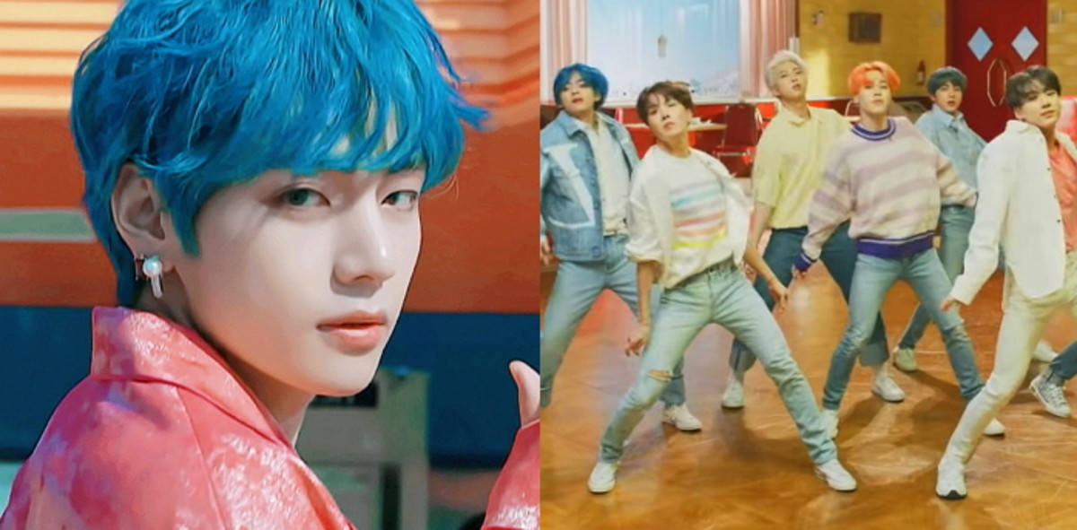 시원한 바다색으로 머리카락을 염색한 뷔는 핑크색 재킷을 입고 카메라를 멍하니 바라보고 있는데, 이는 화보의 한 장면을 방불케 한다.