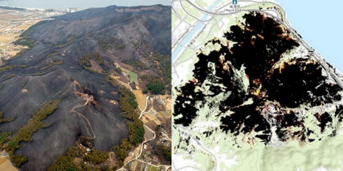 이는 강원도 산불로 얼마나 심각한 피해를 입었는지 짐작게 했다. 우주에서 관측될 정도로 강원도 산림 일부가 심각하게 훼손된 것이다.