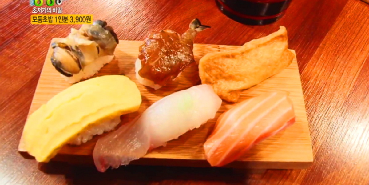 이곳에서는 '모둠 초밥' 1인분을 단돈 3,900원에 먹을 수 있다.