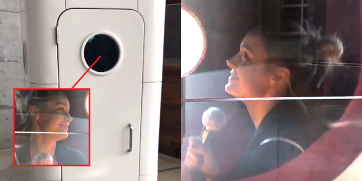 브리 라슨은 먹방 투어 이후 코인 노래방을 찾았다. 그는 자그마한 통 안에 들어가 마이크를 쥔 채 누구보다 신나게 노래를 열창했다.