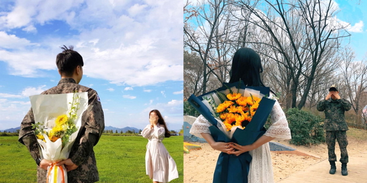 지금 군화와 고무신인 이들이 있다면 전역 당일, 사진처럼 연인에게 해바라기를 건네며 함께 인증샷을 찍어보는 건 어떨까.