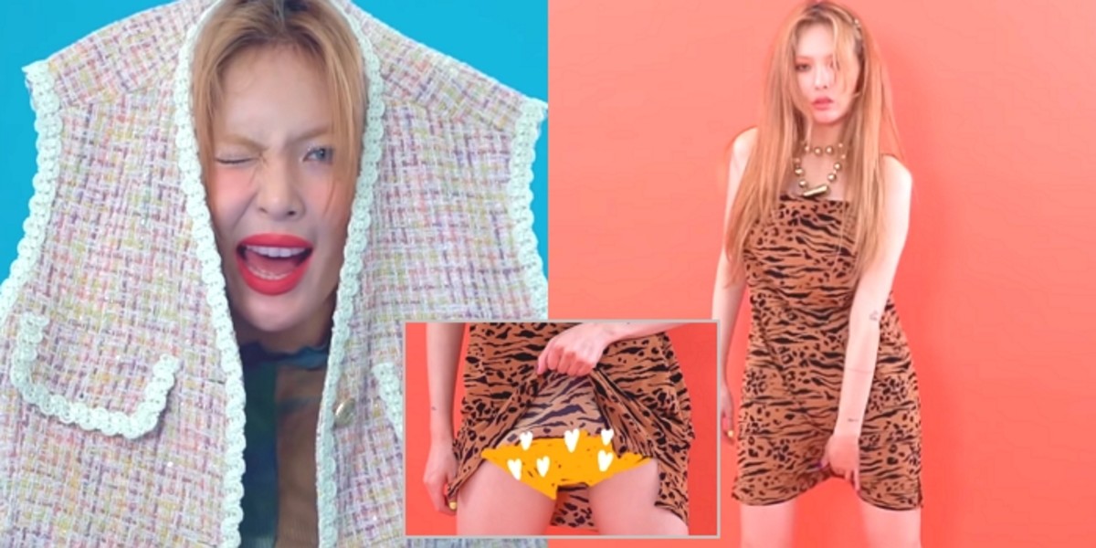 강렬한 레오파드 의상을 입고 등장한 현아는 몽환적인 표정을 지은 채 치마를 훌렁 들어 보였다.