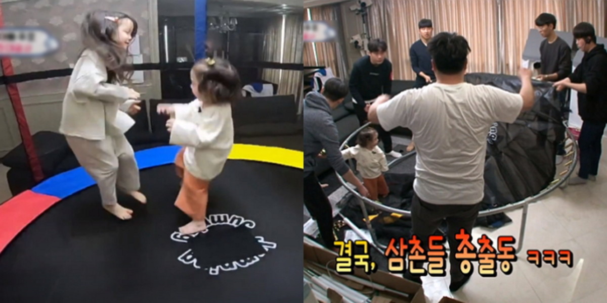 한참 구슬땀을 흘린 VJ들은 곧 트램펄린을 완성시켰다. 나은이와 건후는 완성된 거대한 트램펄린 위에서 방방 뛰며 즐겁게 뛰어노는 모습으로 VJ들에게 웃음을 전해줬다.