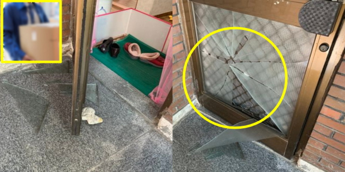 '바빠서 택배 던지고 가셨나 보다'라 생각하며 현관으로 나갔던 A씨는 산산조각난 현관문 유리창을 마주하게 됐다.