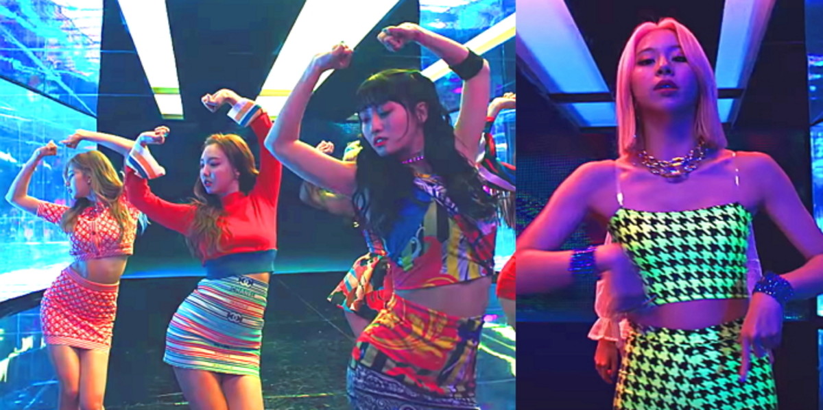 트와이스는 줄무늬 셔츠, 형광색 옷 등 화려한 옷을 입고 나와 팔 근육을 뽐내는 듯한 포즈를 취한다.
