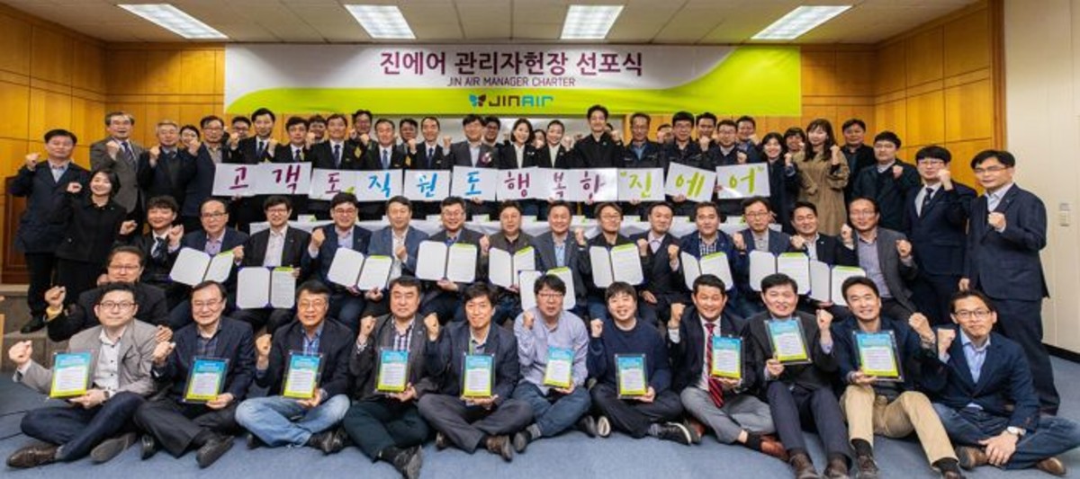 진에어 본사서 관리자 60여명 참석하여 관리자 헌장 선포 직원들 의견 담은 바람직한 관리자 상 핵심 7개 영역 선정