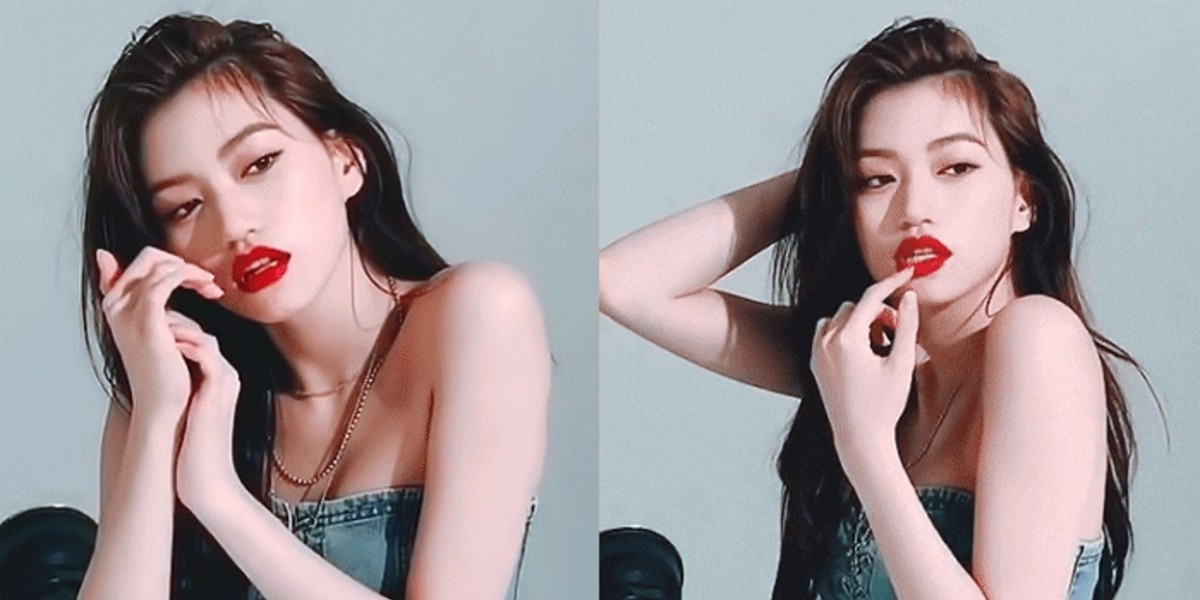 김도연은 빨간 립스틱을 바르고 머리카락을 뒤로 넘겨 길게 늘어뜨린 채 고혹적인 미모를 자랑했다.
