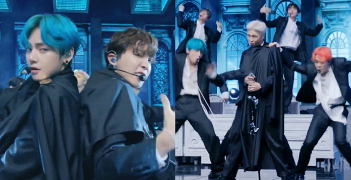 검은 망토를 두르고 등장한 방탄소년단 멤버들은 카리스마 넘치는 모습으로 좌중을 압도했다.