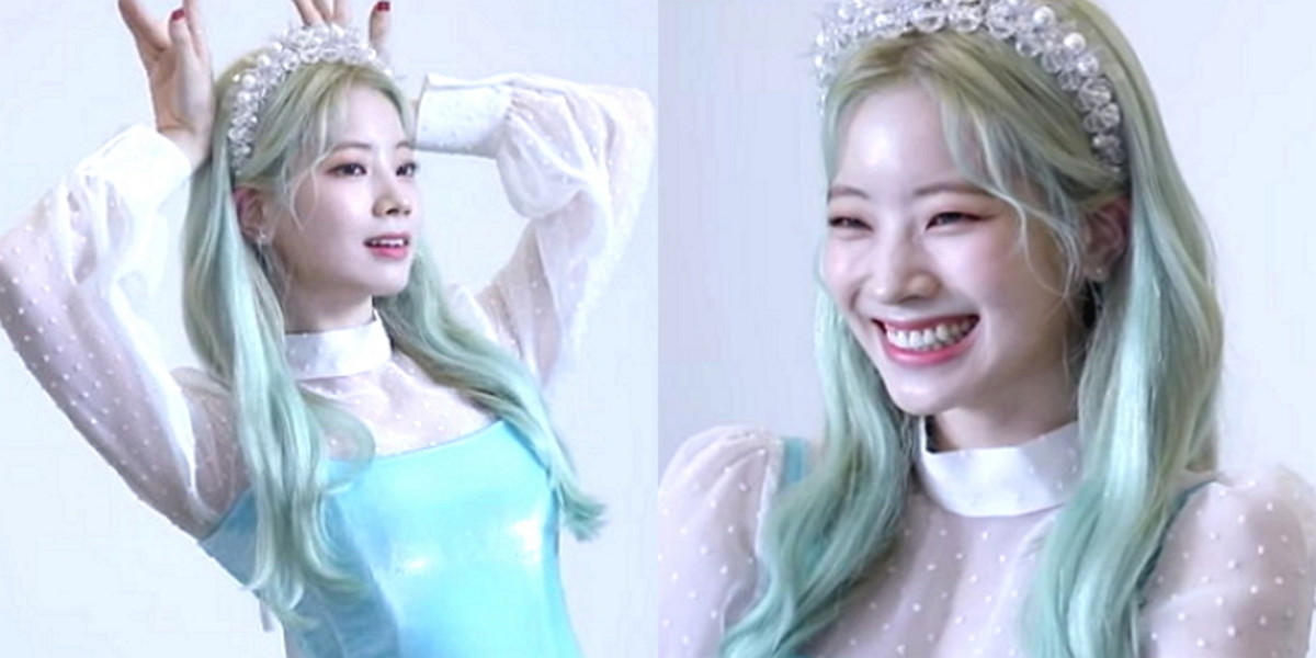 이날 다현은 에메랄드빛으로 염색해 '요정' 같은 분위기를 풍겼다.