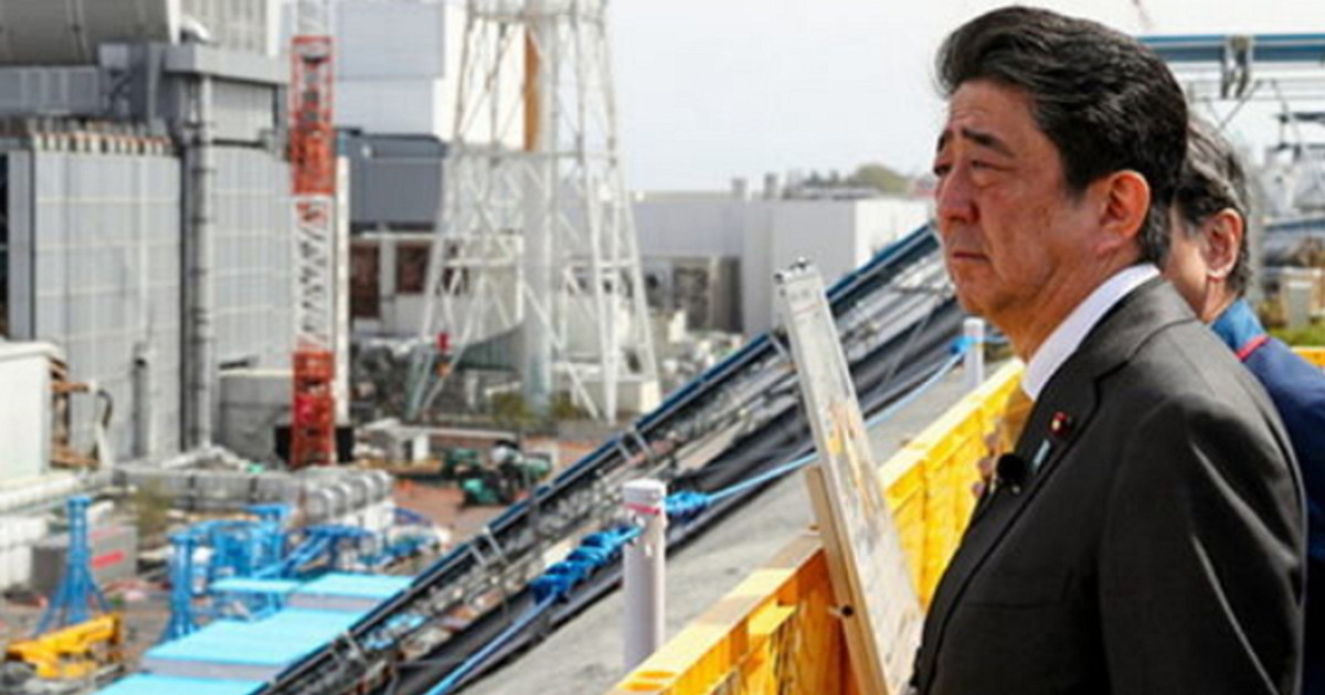 지난 14일 아베 총리는 2013년 이후 5년 만에 후쿠시마를 방문했다. 이전에는 방호복을 입었지만 이번에는 마스크도 하지 않고 정장만 입은 채였다.