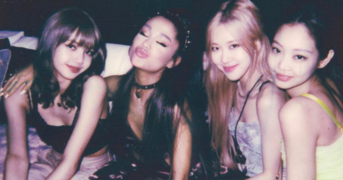 공개된 사진 속엔 멤버 제니, 로제, 리사와 함께 앉아 다정한 포즈를 취하는 아리아나 그란데의 모습이 담겼다.