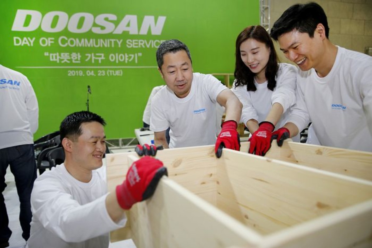 박정원 두산그룹 회장은 임직원들과 함께 서울 중구에서 진행된 '따뜻한 가구 이야기' 활동에 참여해 수납장, 책장 등 가구 200점을 직접 제작해 인근 지역 가정 100 곳에 전달했다.