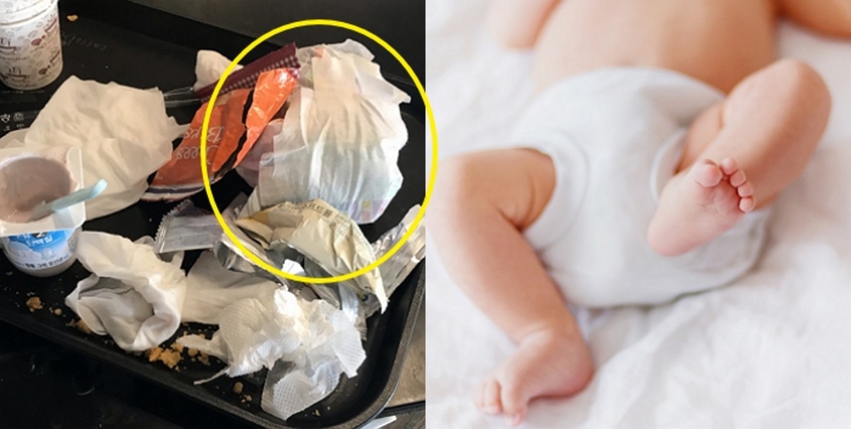 트레이 위에 한가득 쓰레기가 있는 건 예삿일이 아니어서 신경조차 쓰지 않았다. 그런데 역한 냄새가 코를 찔렀고, 내려다보니 돌돌 말린 아기 똥 기저귀가 눈에 들어왔다.