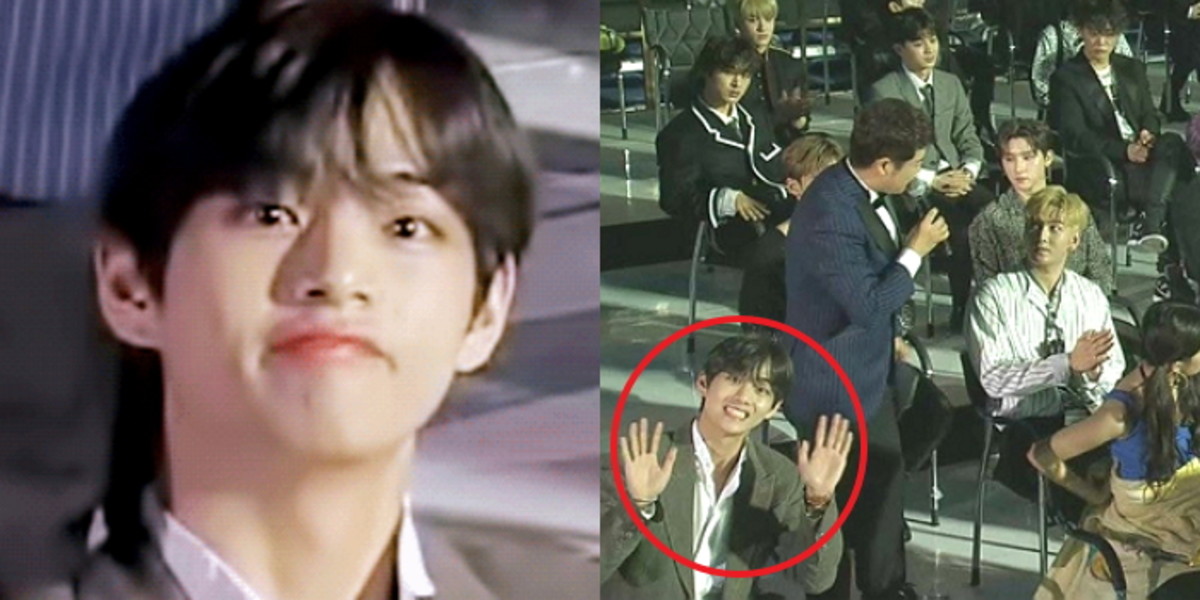 이어서 뷔는 해맑게 미소를 지으며 잔망스럽게 손을 흔들어 반가움을 표현했다.