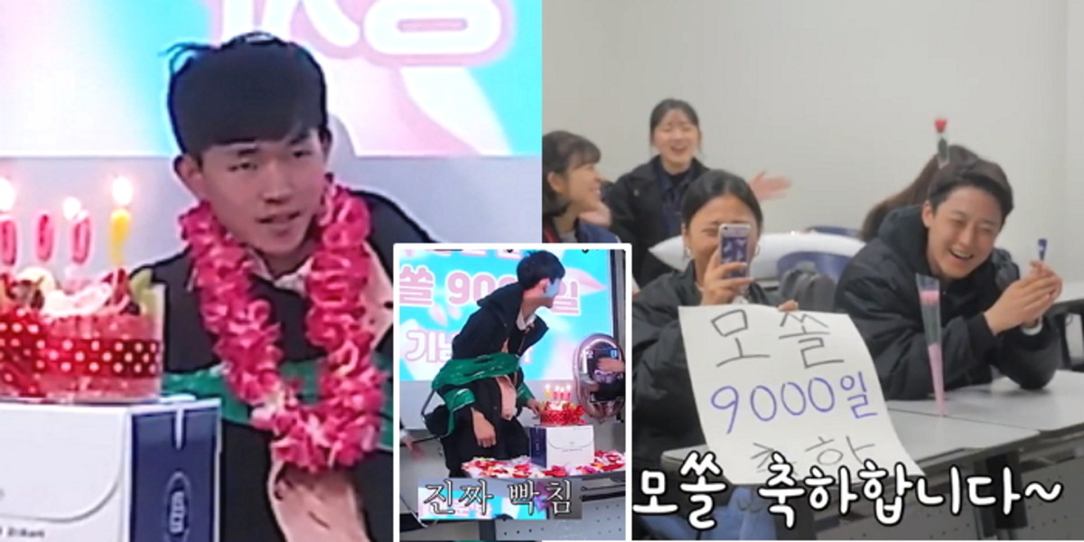 준한 군은 "설레"라고 말하며 기대감을 내비쳤지만, 사실 강의실에는 난생처음 보는 사람들이 그의 '모태솔로 9000일'을 축하해주기 위해 기다리고 있었다.