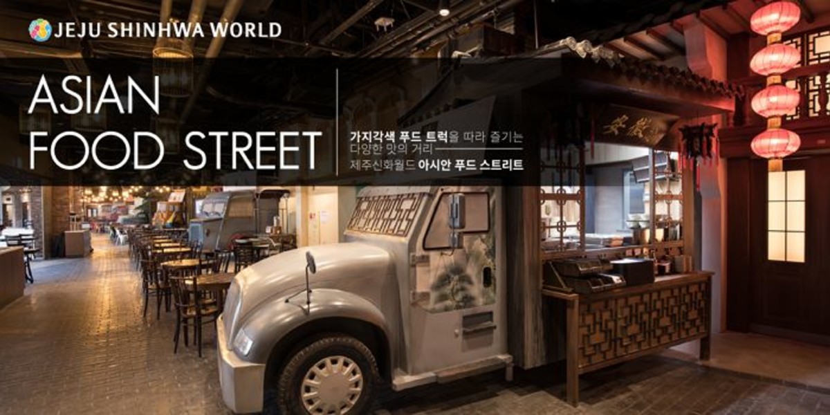 '아시안 푸드 스트리트'는 아시아 각국의 정통 요리를 합리적인 가격에 제공해 제주신화월드의 인기 맛집 거리로 유명하다.