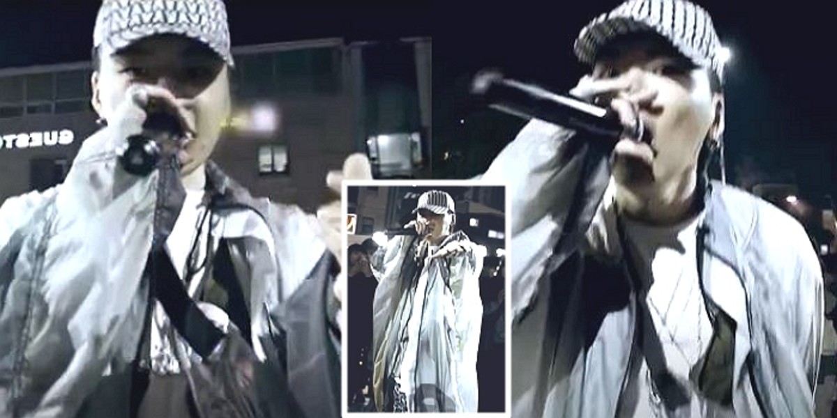 공개된 영상 속 키드 밀리는 사람들이 모여있는 거리 한가운데서 랩을 하고 있다.