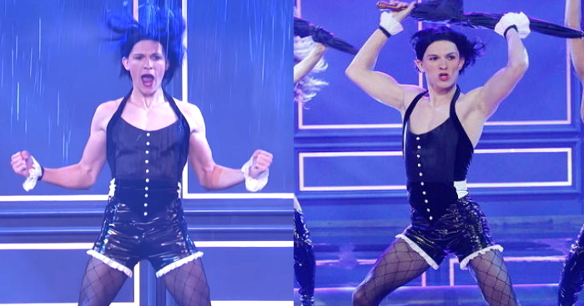 톰 홀랜드가 파격적인 의상을 입고 등장해 격렬한 안무를 선보였기 때문이다.