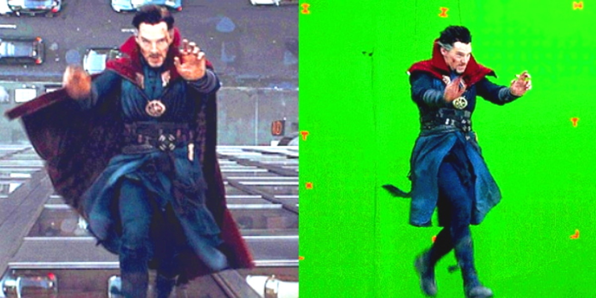 베네딕트 컴버배치는 건물이 빼곡하게 차 있는 도심이 아닌 초록색 배경의 CG 촬영장에서 영화를 찍고 있었다.