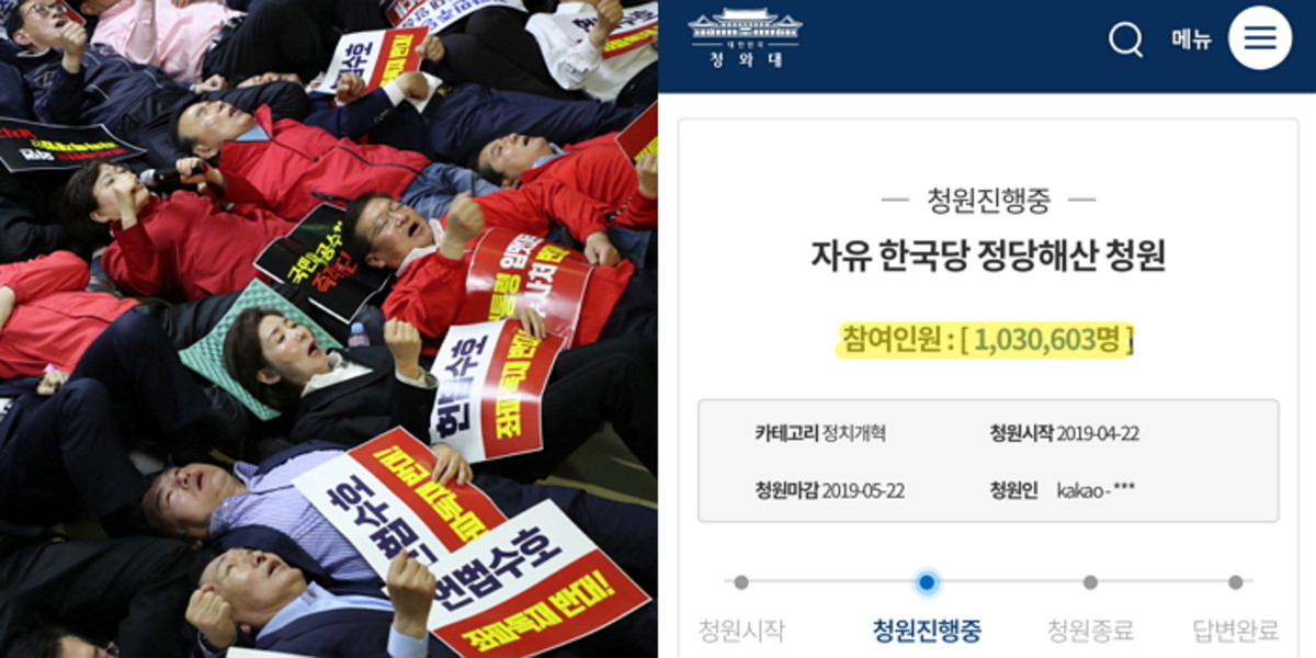 [인사이트] 황효정 기자 = 자유한국당에 대한 정당 해산 청원이 100만명을 돌파했다.
