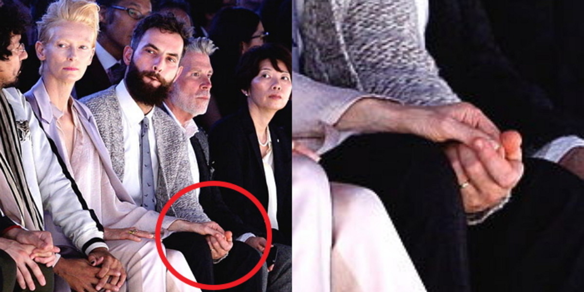 남자친구와 손 꼭 잡고 패션쇼 보고 있는 틸다 스윈튼 / GettyimagesKorea