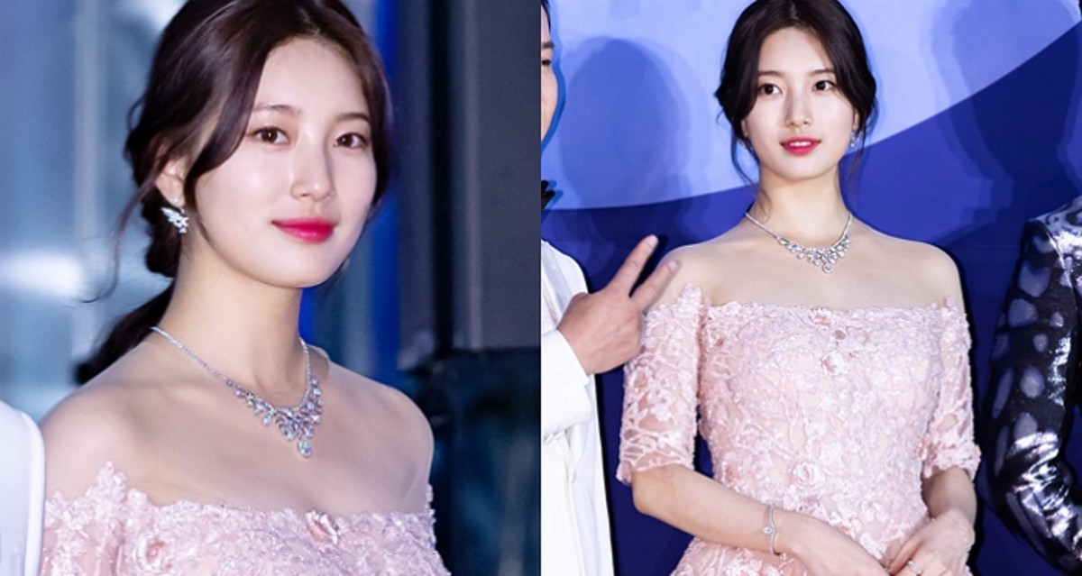 [인사이트] 디지털뉴스팀 = 핑크빛 오프숄더 드레스를 입고 등장한 수지가 여신 같은 자태를 뽐냈다.