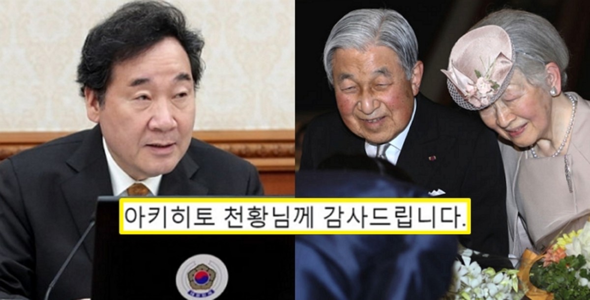 지난 30일 이 총리는 자신의 SNS에 "일본이 '헤이세이' 시대를 마치고 '레이와' 시대를 연다"라며 "한일관계를 중시하셨던 아키히토 천황님께 감사드린다"는 내용의 글을 올렸다.