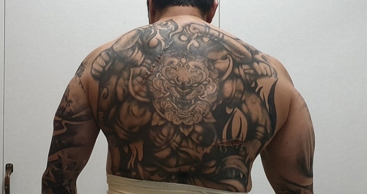 마동석은 등 전체에 빈틈없이 도깨비 문신을 새겼다. 독보적인 두툼한 팔뚝에도 빼곡하게 그려진 문신이 눈에 띈다.